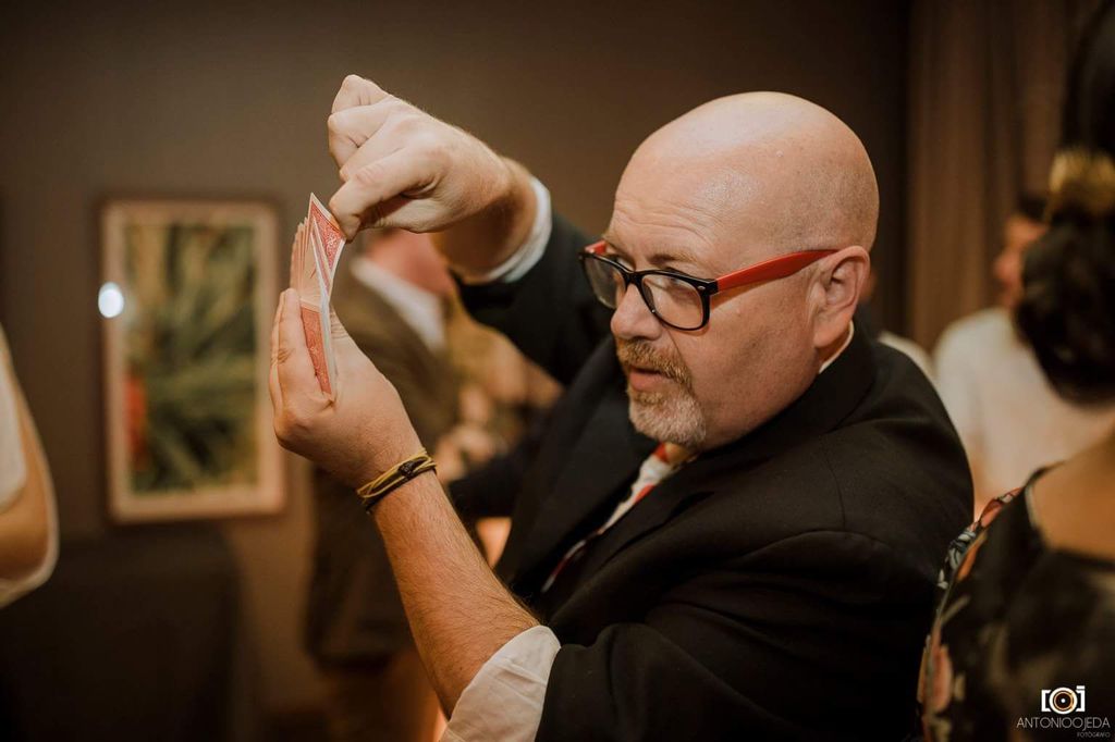 Haciendo participativos y sorprendentes juegos de magia a centímetros de los ojos de tus invitados.